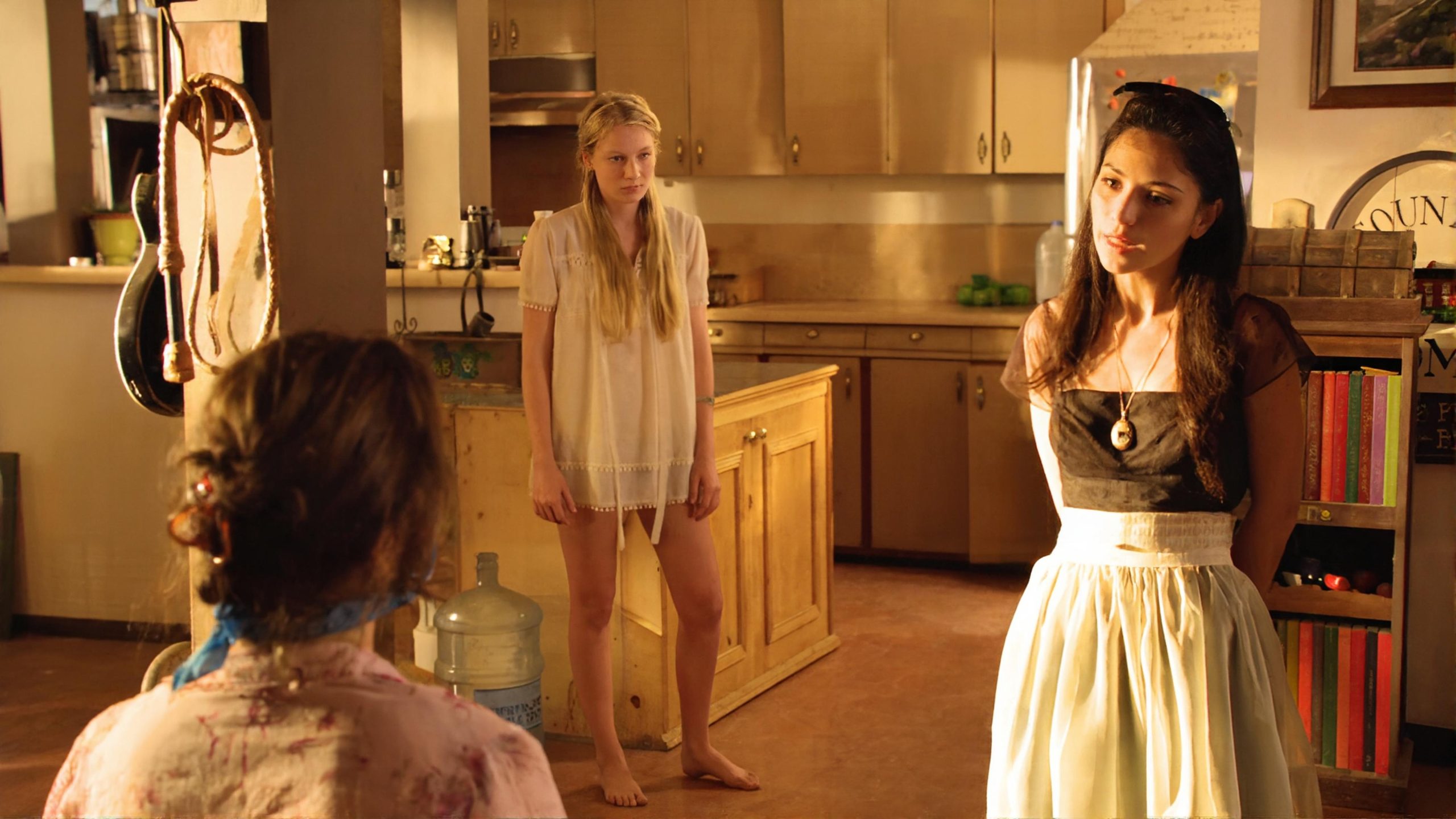 Still, he somehow rents the cottage, and the family’s already shaky interpersonal dynamics become shakier, especially when Arquette’s cult-girl entourage shows up. Yes, David Arquette comes with Charlie Manson Girls, and, shockingly, this is the part of the movie that actually works. Their casting is weirdly excellent, and the contrast between them and the suburban Hallmark family is almost interesting.